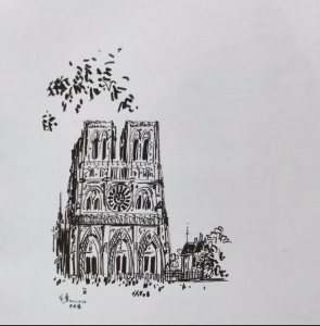 2013年,朱宝勇去法国时画的巴黎圣母院。