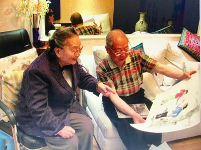 朱宝勇与歌唱家郎毓秀欣赏画作。