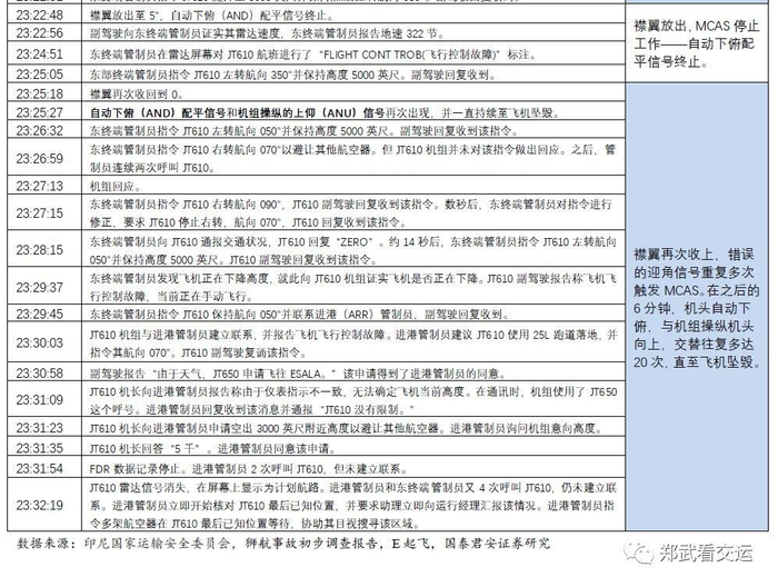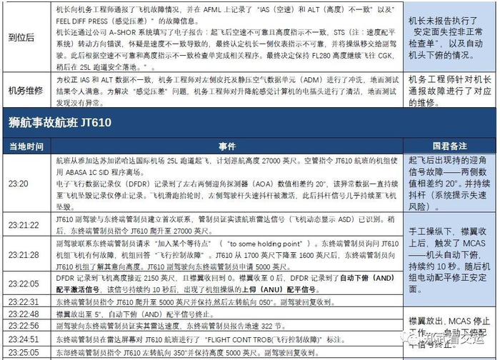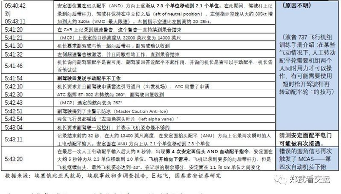 (国君注:根据事故初步调查报告披露的内容,机长未报告执行了“安定面失控非正常检查单”,以及“自动机头下俯”的情况)
