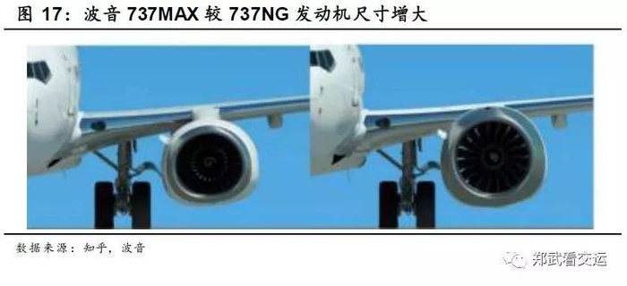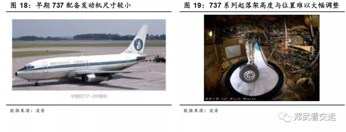 随着航空发动机技术的发展,新的发动机推力更大更省油,尺寸也更大。当年波音为第二代机型737-300换装直径更大的CFM56-3发动机,重新设计了向前伸出的新发动机挂架,配合略微加长的主起落架,并重新设计了后机身平衡重心。相关设计调整,也为第三代机型737NG所继承。波音737系列是1959-2016年间安全性最高的主流机型之一。