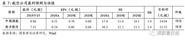 三大航2019年1月1日经营租赁进表,人民币兑美元汇率敏感度较2018年底明显放大。人民币兑美元汇率的波动,将产生一次性汇兑损益,影响航空公司当期报表业绩,不影响现金流与航空公司内在价值。