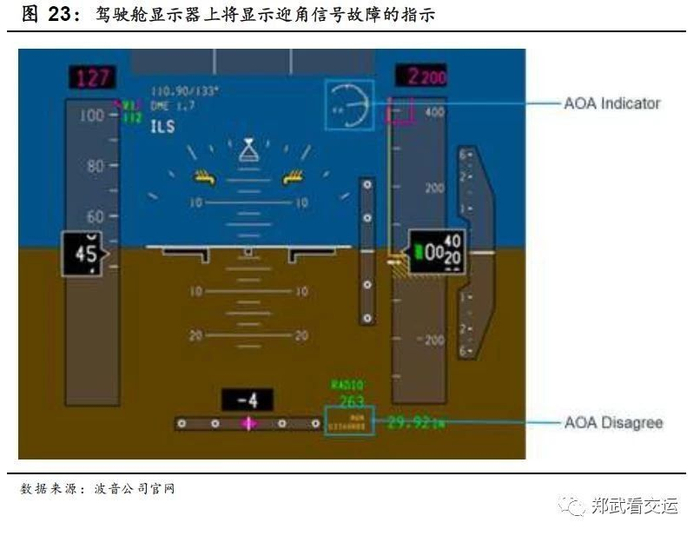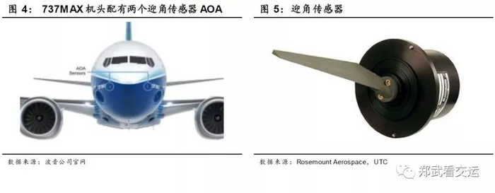 波音737飞机的机头两侧各有一个“迎角传感器”(AOASensor),提供迎角信号输入,以协助判断飞机姿态。当飞机迎角过大时,飞行员或飞控系统将调整飞机姿态,规避失速。
