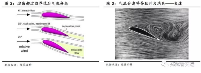 持续产生升力的前提条件是,要保证上翼面的气流不分离。当“迎角”AOA(AngleOfAttack,指机翼前进方向与机翼弦线之间的夹角)超过临界值后,上翼面的气流开始分离,随着迎角的继续增加,机翼产生的升力明显减小,即发生“失速”。