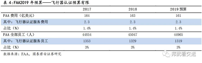美国FAA仍是全球最具有认证能力的机构。但两起事故后,FAA对波音的机构委任授权(OrganizationDesignationAuthorization)使其认证程序与认证能力受到质疑。FAA代理局长埃尔维尔在国会作证时称,将部分安全审查责任授权给波音的做法已经实践数十年,若全部交给FAA独立完成安全审查,每年将需要额外1万名新雇员、18亿美元经费。根据FAA披露的2019年预算,其飞行器认证预算及人员均非常有限。