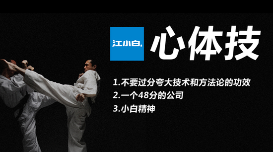 大家都好奇过,江小白这个名字怎么来的。当年互联网兴起时,大家取QQ名时都很谦虚的说自己是某个领域的小白,我是投资小白、音乐小白、驾驶小白。小白就是当下年轻人自嘲自谦,又自信自强的表现。由品牌精神延伸出来的小白精神在我们公司内部深入骨髓,是我们最主要的企业文化。我们无需去标榜能做多么好,我们知无知,我们把话说小把事做好。