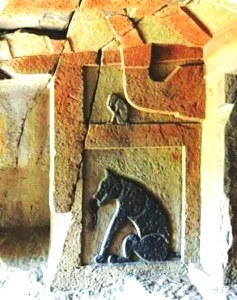 郪江崖墓内的浮雕“狗拿耗子”。