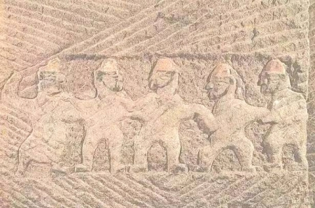 塔梁子崖墓胡人歌舞雕刻。