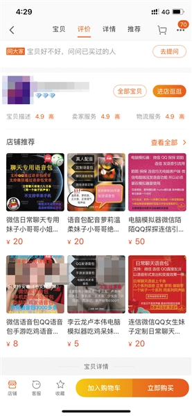 在调查过程中,记者还发现语音包可以“私人定制”。“支持各类语音定制,软件里的妹子声音都可以定制。”