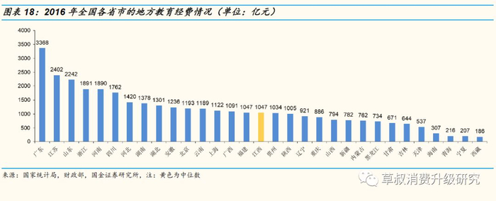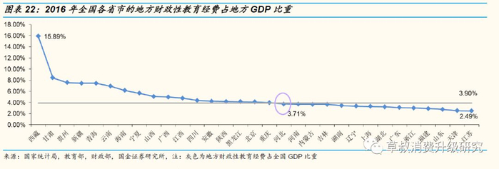 教育是一个和财政投入高度相关的行业,属于“半公半私”行业,但民办教育和公办教育是补充关系,有替代关系,但无法完全互相替代。首先明确一个概念“虽然教育财政经费已经投入了很多,但是还是不足的”,而教育财政投入更不足的地方,其实反而更需要社会资本的参与,来推动整个地区教育的发展。故对教育财政投入的深入研究,包括结构性,地域性,对整个教育行业的投资研究,都是非常重要的。