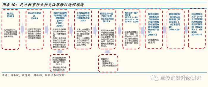 地方公共财政教育支出对地方财政造成一定压力,或是新民促法相关政策出台的重要原因之一,加大民办教育力量投入需求突出。地方公共财政教育支出在2012年对于地方财政的压力达到高点,且至2017年该现状未有明显缓解,我们认为这可能是2012年之后相关政策出台的重要引发原因之一——2013年开始在上海&温州两地试点民办学校营利性改革。2013年6月29日第十二届全国人民代表大会常务委员会第三次会议发布《关于修改〈中华人民共和国文物保护法〉等十二部法律的决定》,完成对于《中华人民共和国民办教育促进法》的第一次修正,“对营利性和非营利性民办学校提出分类管理,民办学校可以自主选择,登记为非营利性或者营利性法人”。2015年12月二审通过教育法修订,删除“任何组织和个人不得以营利为目的举办学校及其他教育机构”的规定,为营利性学校确权。 2016年11月7日第十二届全国人民代表大会常务委员会第二十四次会议发布《关于修改<中华人民共和国民办教育促进法>的决定》,完成第二次修正(也就是现在所说的“新民促法”)。2018年8月27日国务院办公厅印发《关于进一步调整优化结构提高教育经费使用效益的意见》(下称《意见》)提出“鼓励扩大社会投入。支持社会力量兴办教育,逐步提高教育经费总投入中社会投入所占比重”。《意见》第二条完善教育经费投入机制中第四款明确指出,“各级人民政府要完善政府补贴、政府购买服务、基金奖励、捐资激励、土地划拨等政策制度,依法落实税费减免政策,引导社会力量加大教育投入”。我们认为地方财政承担主要教育投入压力,公办教育需要结合民办教育共同发展,地方政府有望持续鼓励引导社会力量兴办教育,加大社会对教育的投入。