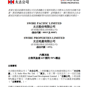 乐居财经讯 王帅 5月21日晚间,太古地产有限公司发布内幕消息及出售英皇道 625 号的 50%权益。