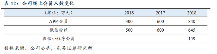目前天虹在线上的销售渠道包括独立APP、微信公众号、微信小程序、PC等多个渠道,且会员均全部打通。截至2018年底,天虹整体会员人数1800万、数字化会员人数达1,644万,其中APP会员人数840万,微信粉丝645万,微信小程序会员159万,消费活跃用户数占比87%。2018年公司的线上交易额达到18亿,同增32%。