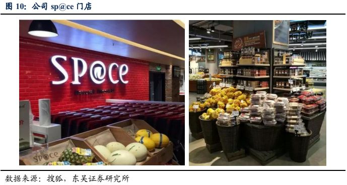 公司截止18年拥有超市数量81家,几乎标配于每一个天虹百货及购物中心内。同时公司于17年推出sp@ce品牌独立超市,作为国内首创的都市生活超市,天虹希望打造一个定位中高端、数字化、体验式的生活超市,为中产阶级家庭提供品质健康生活解决方案。sp@ce超市最大的特点在于,其不用传统的商品分类设计整体动线,而是通过消费者的生活区块场景,从冰箱、厨房、到餐桌的顺序来设计主题专区导致动线。截止18年,公司的sp@ce品牌独立超市已有10家门店。