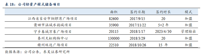 在此基础上,公司在18年又新增3个百货/1个购物中心的加盟/管理输出储备项目,我们预计在未来这种轻资产、降低公司成本同时帮助当地地产商提升物业价值的双赢合作模式将会被公司持续使用。