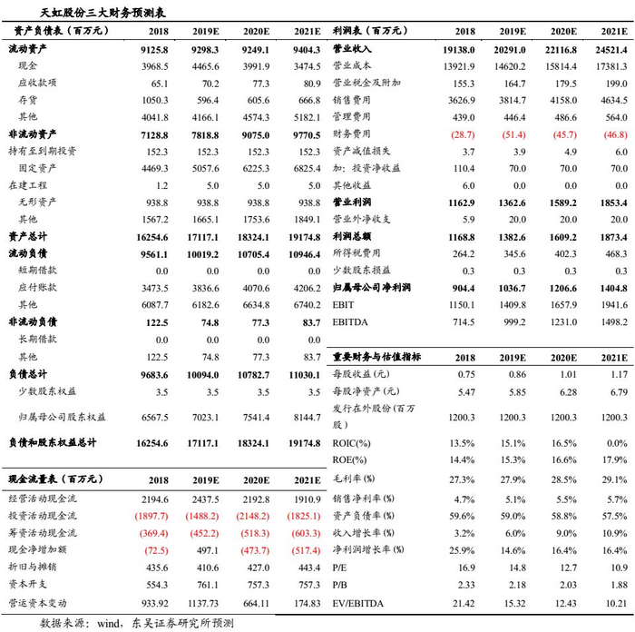 公司账上现金充裕,资产结构健康。截止18年底,天虹的160亿左右总资产中,现金及理财接近76亿,固定资产近45亿。同时,公司账上并无有息负债,大量现金的来源是公司的应付和预收账款。由于应收和预付账款均为公司日常经营的正常结转,多年来一直保持稳定,因此公司账上有充裕的现金用于未来的扩张。