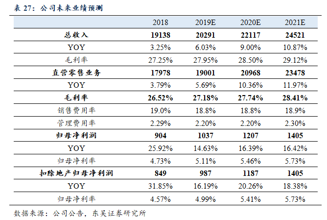 在毛利率逐步提升,费用率整体平稳的情况下,公司净利率有望持续提升,同时使得公司未来三年零售主业净利润有望保持接近20%的复合增速。