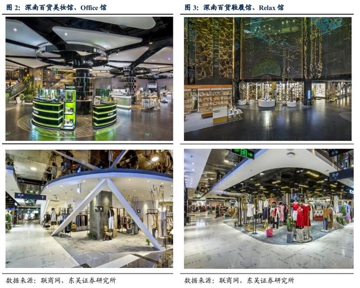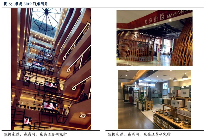 (2)新型中高端百货代表君尚3019。作为公司新零售标杆,位于公司总部边的君尚3019开业于2016年,商场8层面积4万平,针对周边商业区较为密集的特点,君尚3019将年轻白领和时尚主妇为主的中产阶级作为主要的目标客群。