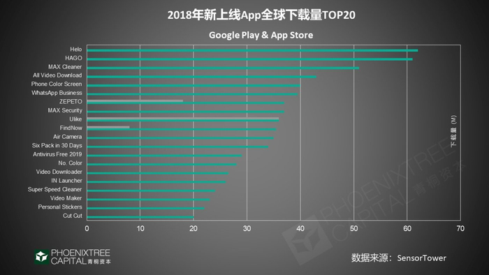 工具类APP作为中国出海最早的应用类型,在2018年市场需求依然强劲。Sensor Tower 发布的2018年新上线的全球下载量TOP20榜单中,中国出海APP占15个,其中5个是工具类应用,这反映出应用类工具的市场生命力。
