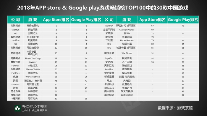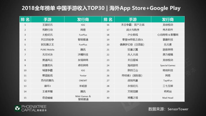 中国其他游戏厂商出海的步伐也不断加快,例如IGG的《王国纪元》成为2018年海外游戏收入排行第一,Funplus、智明星通等企业也在海外市场快速成长。