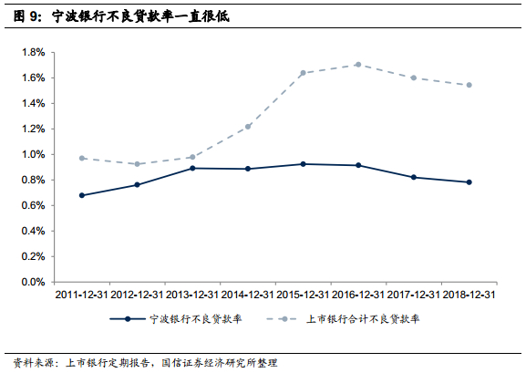 贷款收益率还需要与资产质量结合来看,因为某些银行是通过介入更高风险客群来博取更高的贷款收益率,这会导致其贷款呈现出“较高收益、较高风险”特征。但从宁波银行数据来看: