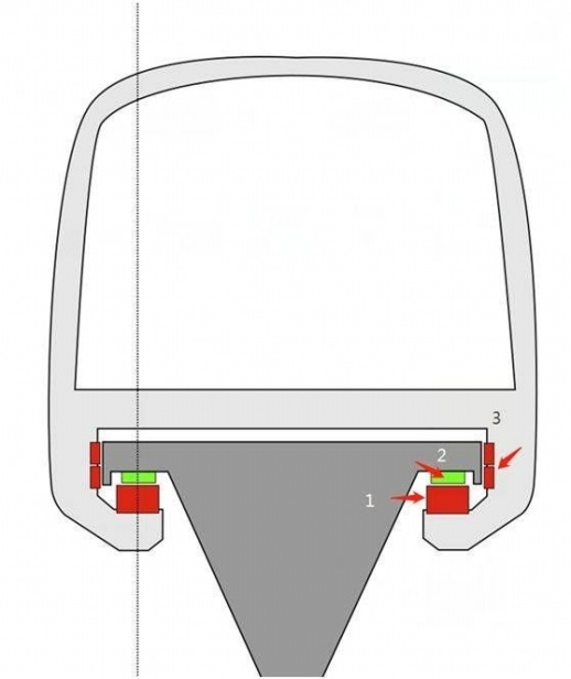 来看下方这张技术示意图,1是悬浮和推进用磁体,2可视为电磁铁(准确说应该是长定子铁芯电枢绕组),3为导向和制动用磁体。
