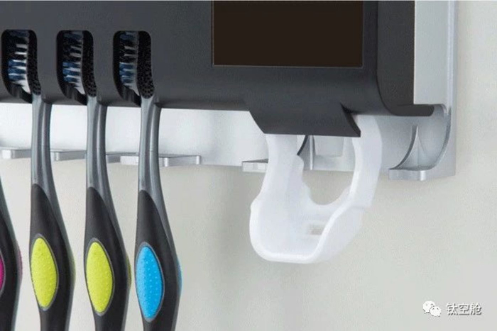 挤牙膏轻轻松松,推一下牙膏架就能挤牙膏,定量量取、干净利落,不会弄脏消毒器。