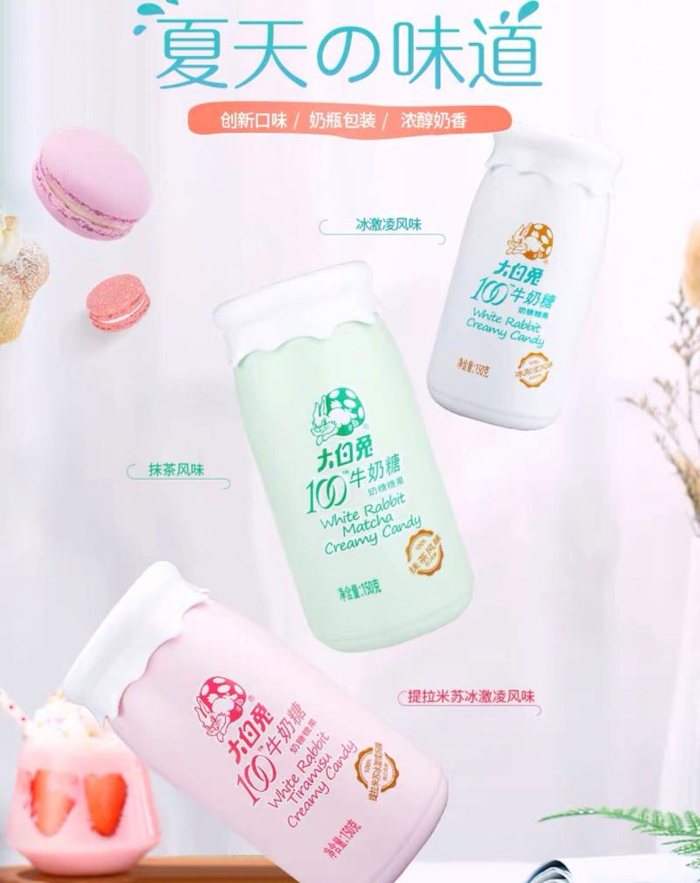 线上店铺的产品同样走年轻化路线。在线下商超,大白兔奶糖销售原味、巧克力味、红豆味奶糖,且以袋装为主。而在天猫旗舰店,大白兔奶糖推出了抹茶味、提拉米苏味、冰淇淋味,并尝试了各色各样可爱的包装——有牛奶瓶、有玻璃罐,也有奶糖式样的铅笔盒造型。今年,大白兔还计划结合天猫大数据研发新的奶糖口味。