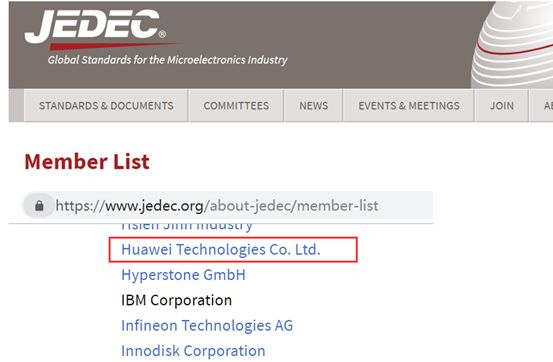 首先,虽然这些港台媒体都信誓旦旦地宣称“国际固态技术协会(JEDEC)”将华为剔除会员名单,耿直哥却在JEDEC的官网上发现华为仍是该协会的会员,并没有被除名。