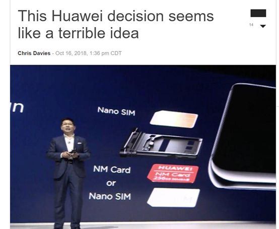 有趣的是,当初华为做出采用NM卡的这个决定时,还曾一度引起不少网民乃至一些科技网站的惊讶。