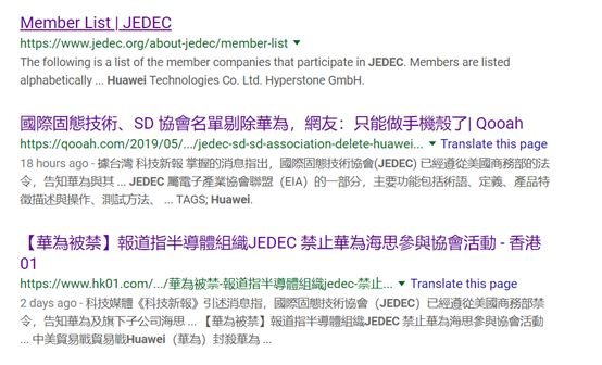 其中在境外搜索引擎谷歌上,耿直哥目前能搜到的于JEDEC剔除华为有关的信息都来自于港台媒体,且源头都指向 “科技新报”一家。