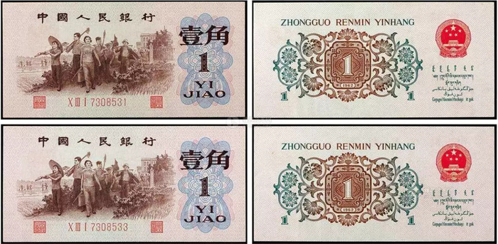 1966年1月“背绿”一角券开始发行,但在流通时由于和当时的二角券颜色近似,不易分辨,很快“背绿”就停止生产。1967年12月便开始对“背绿”一角券只收不付,同时开始发行经过修改的“枣红”一角券,一直流通到八十年代末期。