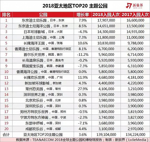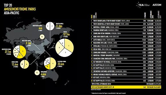 【亚太地区】TOP20主题乐园接待量整体增长3.6%