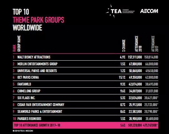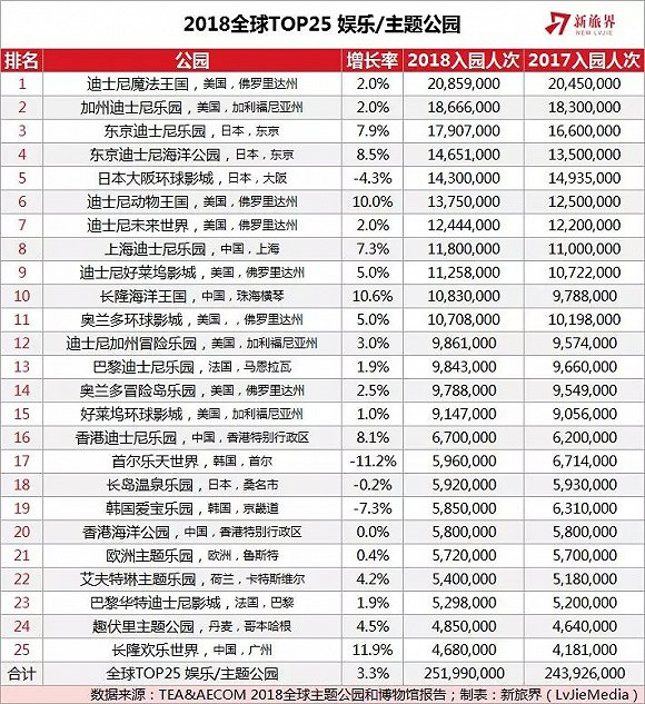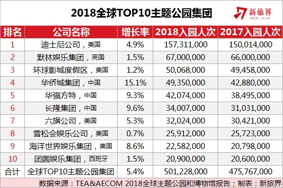 原标题:TEA&AECOM报告:2018全球十大主题公园集团共接待5亿游客 中国增速领跑全球