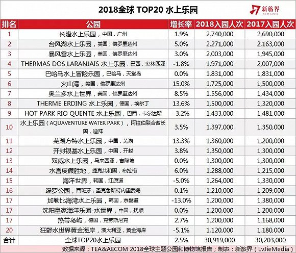 全球水上乐园入园人次整体上升2.5%,其中北美地区增长率为5.8%,欧洲、中东及非洲地区的增长为6.7%。