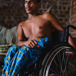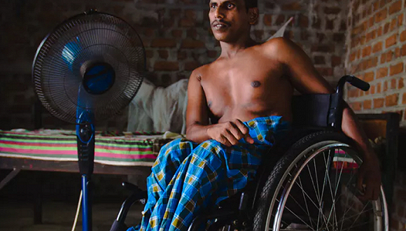 在2009年内战即将结束的前几周,因在Mullivaikkal受到炮弹袭击而瘫痪的一名泰米尔人, 2018年摄于斯里兰卡东部省 图片来源:Priya Tharmaseelan