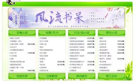 数据显示,晋江文学城从2003年成立截至今年4月,网站注册用户数超过3297万,日均日平均在线时间达到94.19分钟,用户除了国内,还包括美国、加拿大、澳大利亚等海外用户。而网站在线网络小说311余万部,已出版小说7513余部,签约版权作品25万余部,平均每个月新增签约版权在2800部以上。注册作者数逾171万,平均日更新字数超过3600万,网站累计发布字数超过753亿。