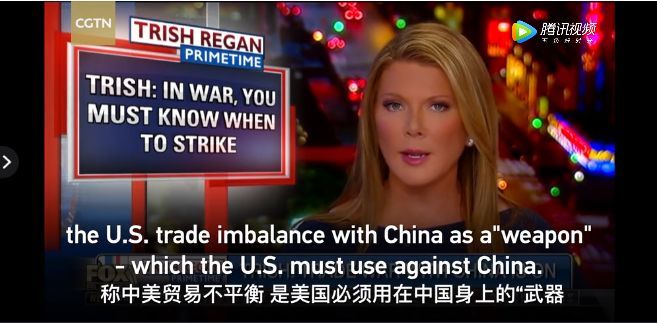 翠西·里根这个名字火了!这一切源于一场翠西与中国国际电视台(CGTN)知名女主持人刘欣“周四见”的越洋辩论。上周,美国福克斯商业频道女主播翠西·里根在一篇情绪十足的“对华经济战”言论中援引不实数据信息,宣称中美贸易不平衡是美国必须用在中国身上的“武器”,攻击中国的繁荣是“以美国利益为代价”“美国别无选择”,唯有一战。
