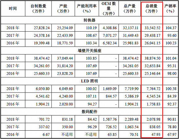三个生产基地项目的建设期计划两年,再两年后满产,这意味着届时,公司需要在当前总销量的基础上,转换器、墙壁开关插座要扩大一倍销量,LED灯要两倍以上销量,才能消化募资投放建设的新增产能。其难度不可谓不高。