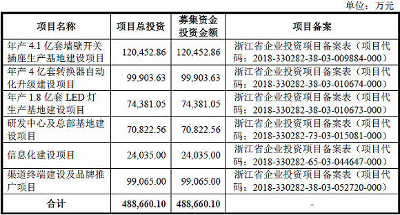 此次募资投向公司也在墙壁开关插座、LED照明两项业务方面扩大产能,同时对转换器生产线进行自动化升级建设。