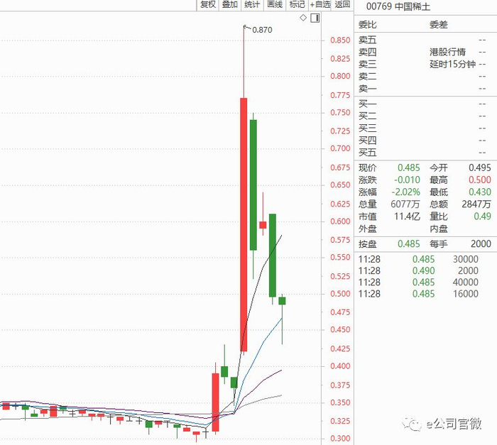 不断的利好消息叠加价格的暴涨,A股市场上资金对稀土板块热烈追捧。稀土概念股纷纷大幅上涨,龙头股金力永磁更是连续封板。而身处无涨跌停限制且是“T+0”交易制度的港股,中国稀土在5月21日一个交易日里暴涨108%,更是风光一时无二。