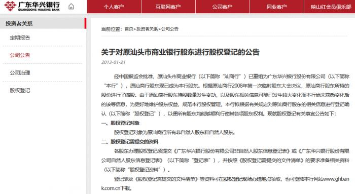 经过长达10年的风险处置,2011年9月,银监会公告,原汕头市商业银行重组更名广东华兴银行,正式获准开业,因化解历史包袱,汕头市商业银行是最后一家完成风险处置的城市商业银行。
