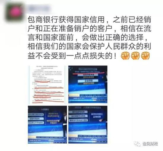 下图是“愉见财经”朋友圈里的一名包商支行长的推送: