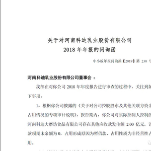 5月27日,科迪乳业(002770.SZ)发布了《关于深交所对科迪乳业2018年年报的问询》,针对科迪乳业2018年财务情况,深交所要求其作出详细解释,股民直言:“都问到了点子上,一次性弄清楚!”