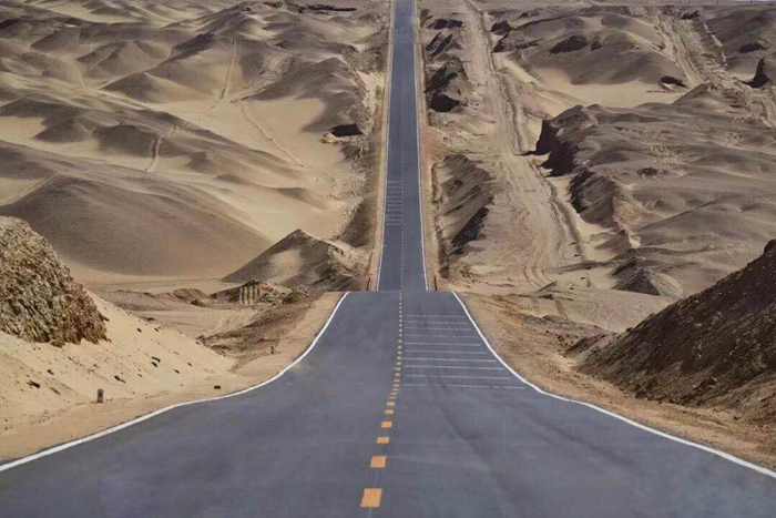 汽车驶出敦煌市区不久,就是绵绵无尽的褐色沙丘,之前高低错落的葡萄架、胡杨和麦田,在后视镜中疾速远去,仿佛没有任何视觉和心理的过渡,盎然的绿洲便被满眼的荒凉取代,落在身后的路,回望时更见苍郁。