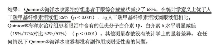 使用Quinton的治疗组患者干眼症减少了68%,优于人工泪液组26%,此研究也发表在了2019年第13期的《临床眼科学》杂志上,效果有目共睹。