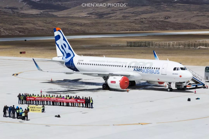 2016年4月10日,A320neo在世界最高民用机场—稻城亚丁进行发动机性能测试。