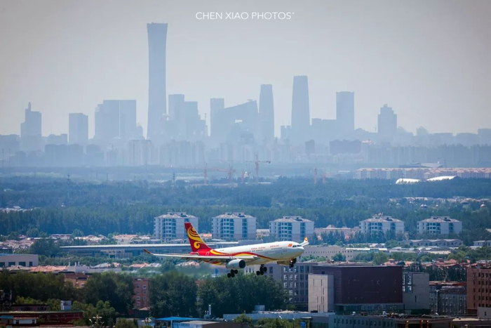 最后,依然是空客飞机,从北京CBD上空飞过。