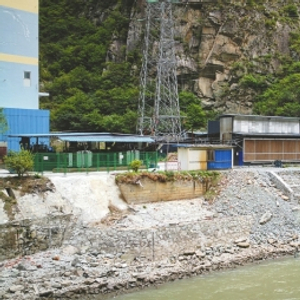 靠大渡河一水电站而建的矿场厂房。