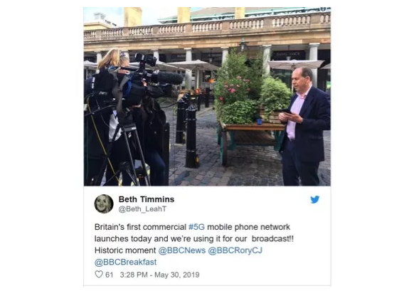 因此,英国BBC专门派出了三路记者去报道英国商用5G网络时代来临的这一“历史时刻”。