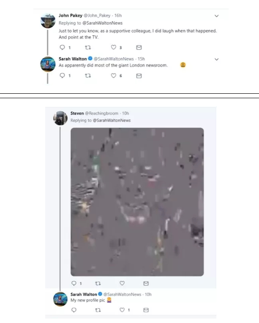 而在英国小报《每日邮报》果然撰写报道调侃了此事后,这位女记者也自嘲地转发了这篇报道,并吐槽说“我确实没想到今天会变成这样”……